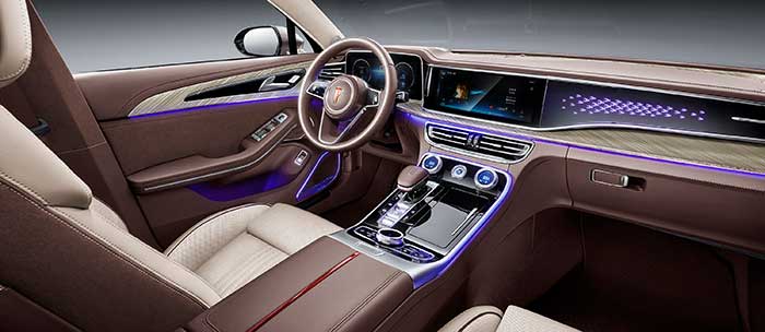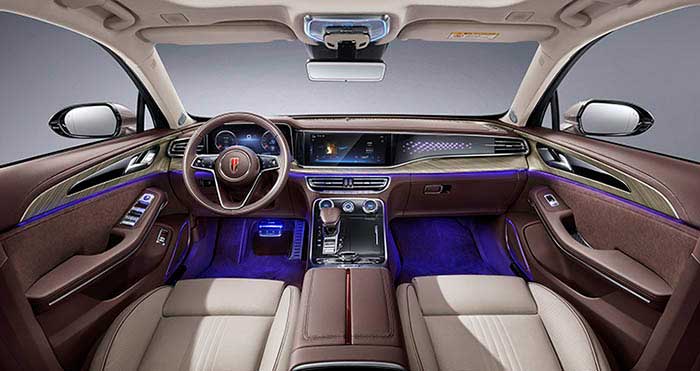 As the interior lights of Hongqi Chinese luxury sedan slowly brighten, it's as though one is stepping into an intimate private theater, transcending the common definition of luxury cars. With such an inventive and superior lighting design, not only are the aesthetics highlighted, but also add an element of opulence and safety, truly indicative of an immersive and seamless journey.