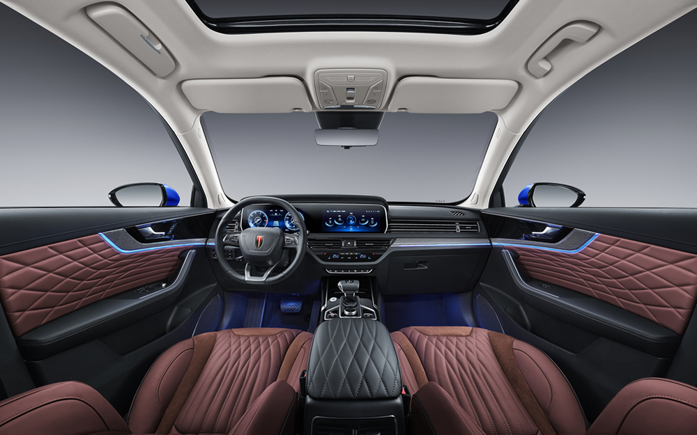 The HS5 car drew inspiration from the majestic eagle, the symbol of honor and freedom. This particular design element represents the strength and elegance of the vehicle while reflecting the dynamic personality of its owner. The light carpet is ingeniously designed with staggered latitude and longitude lines, creating a striking visual effect similar to an eagle soaring in the sky. This intricate layout of the LED lights adds a captivating glow to the Hongqi HS5, further emphasizing its luxurious appeal. After-sale service is also a key part of the HONGQI experience, with commitments to customer-centric solutions, assurance services, and lifetime maintenance, ensuring a seamless ownership experience for every HONGQI buyer.
